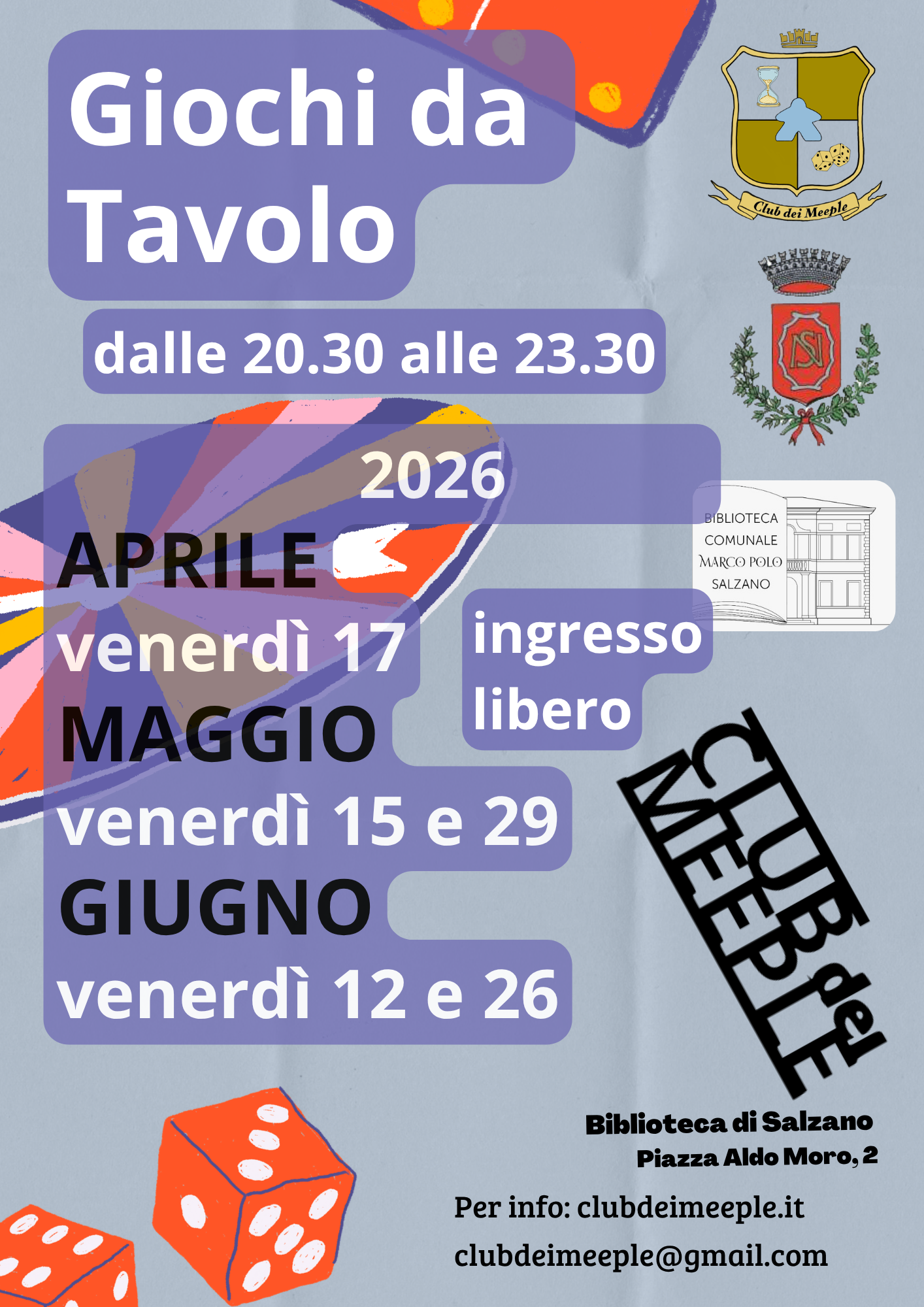 Tornano gli appuntamenti con i Giochi da Tavolo in Biblioteca a cura dell'Associazione Club dei Meeple di Trebaseleghe
