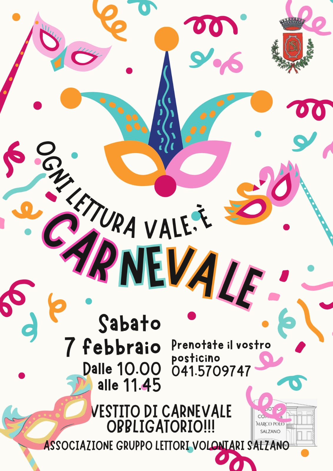 Sabato 7 febbraio 2026 dalle h. 10.00 alle h. 11.45 letture animate in Biblioteca a cura dell'Associazione Gruppo Lettori Volontari di Salzano